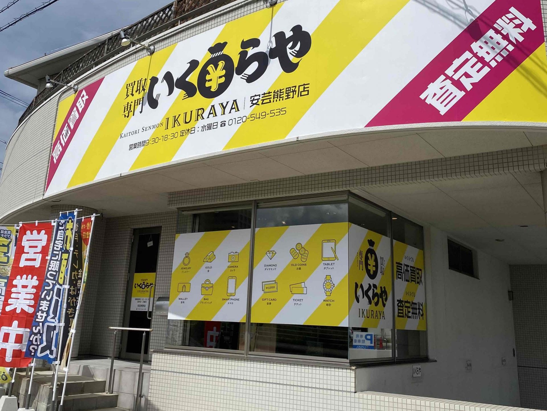 ≪熊野町役場から車で約6分≫矢野安浦線沿い、広島銀行の隣にある黄色い看板が目印の買取専門いくらや 安芸熊野店がオープンしました!