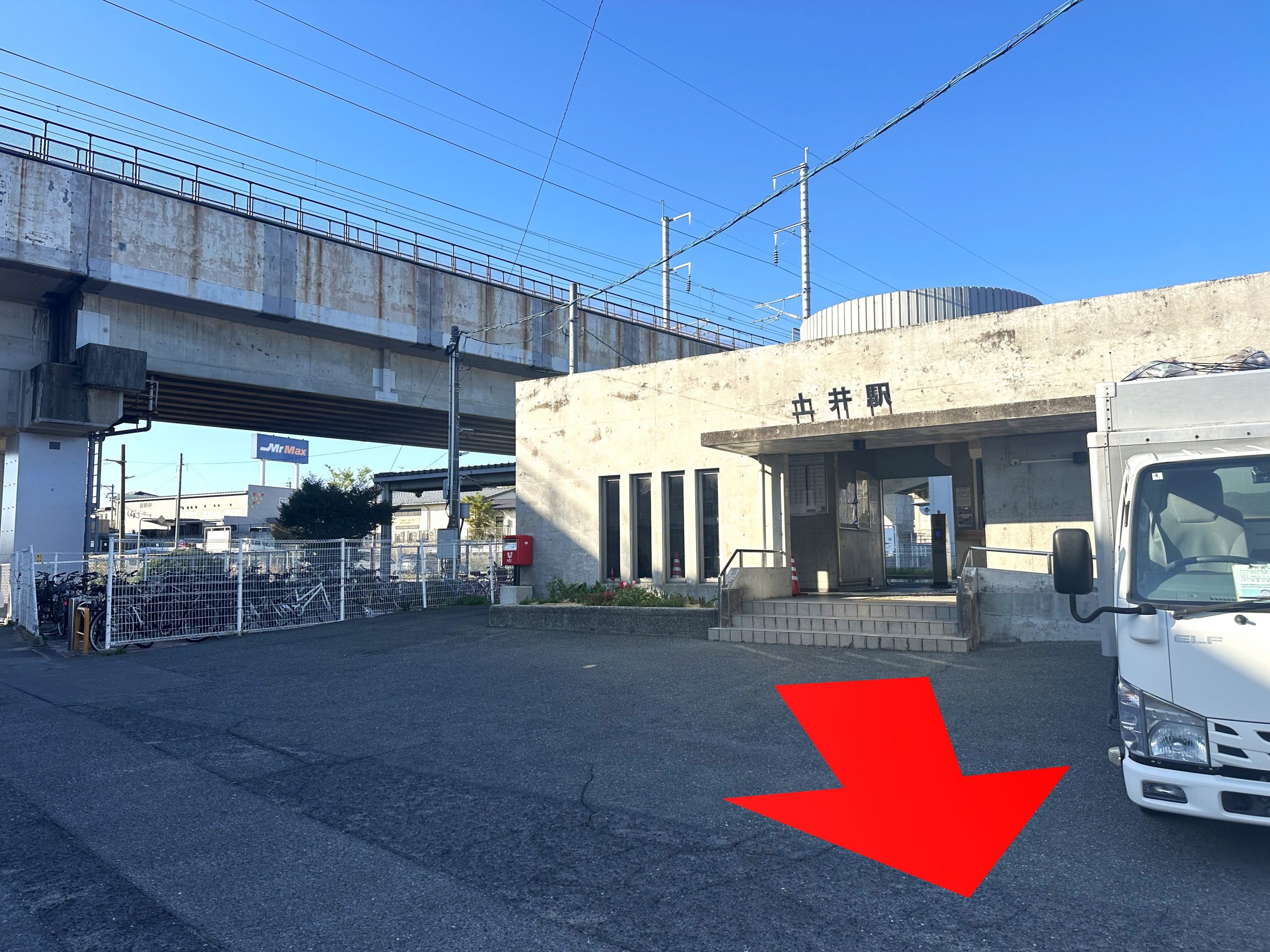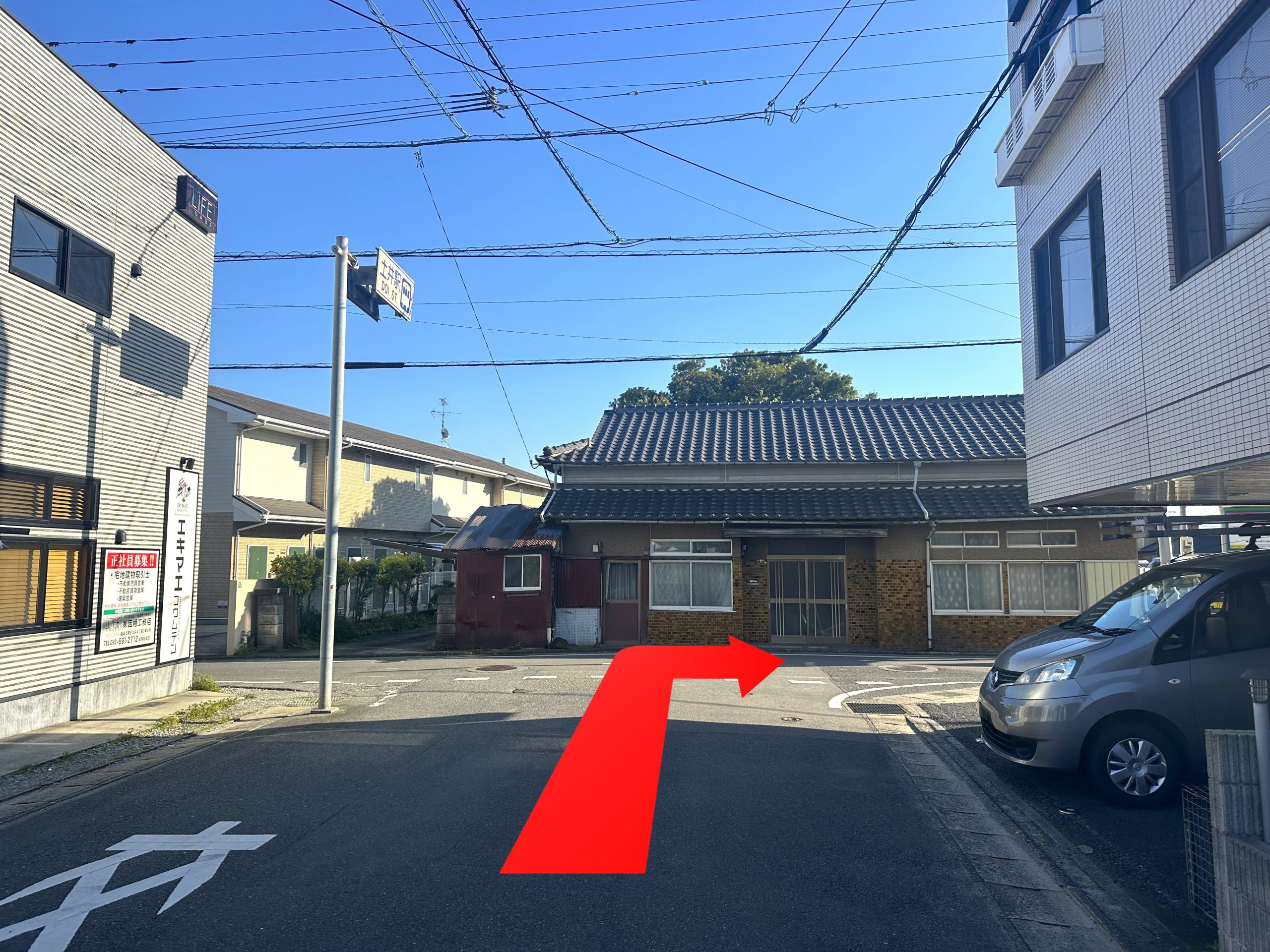 土井駅を出て、左斜め前に進みます。
