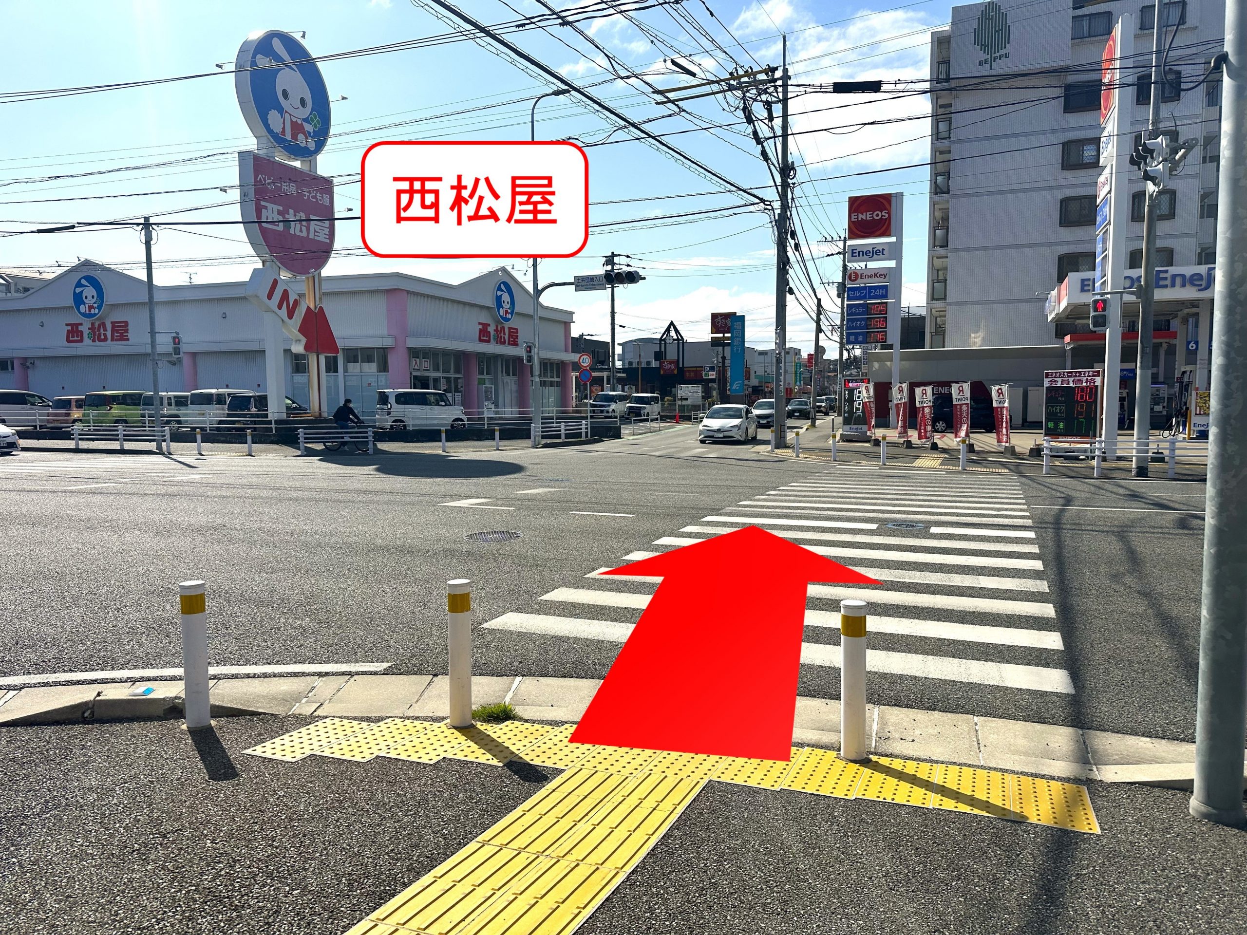 西松屋福岡土井店を目印に、土井団地入口交差点を通過します。