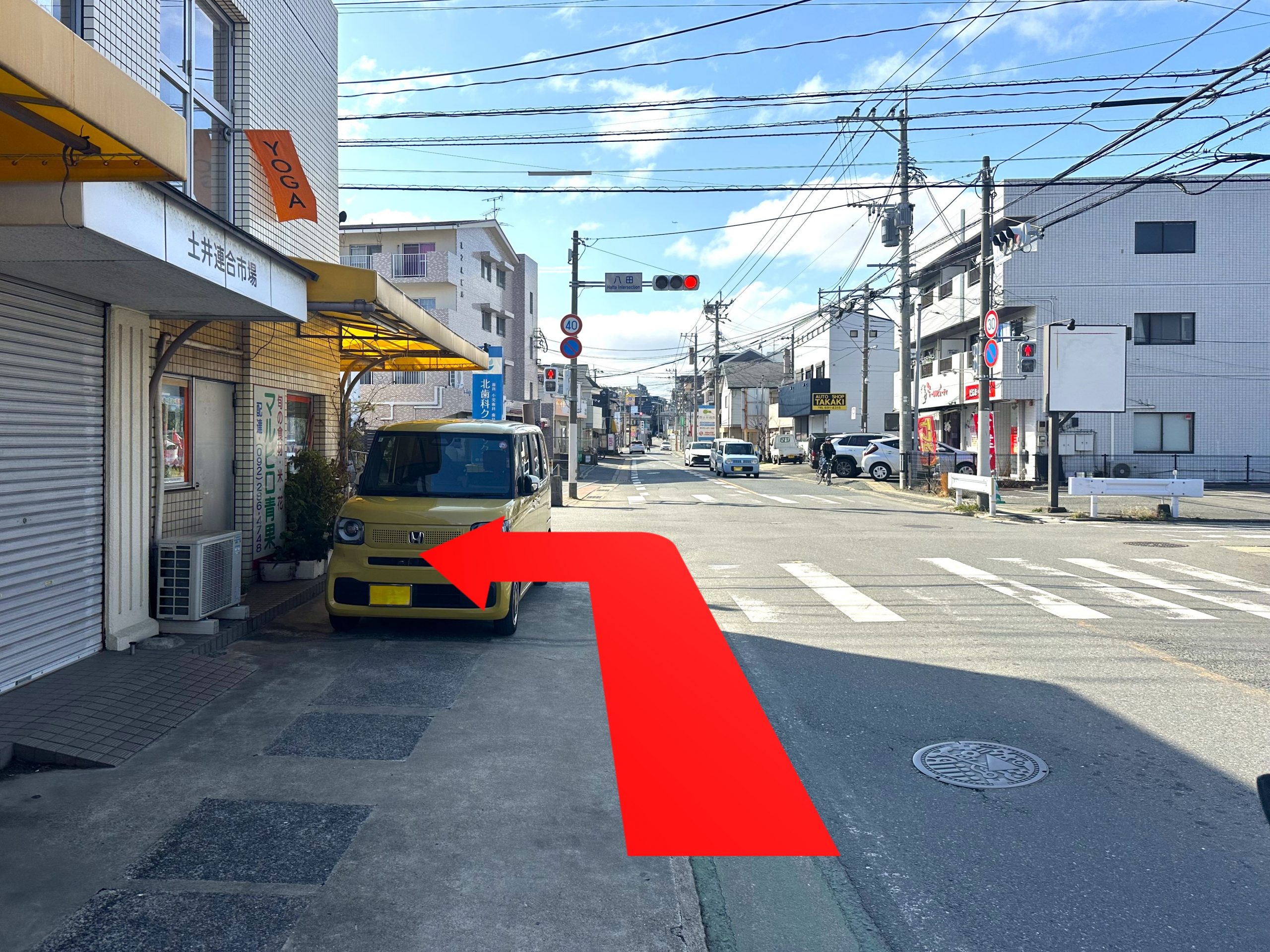 さらに200mほど直進し、八田交差点を左折します。