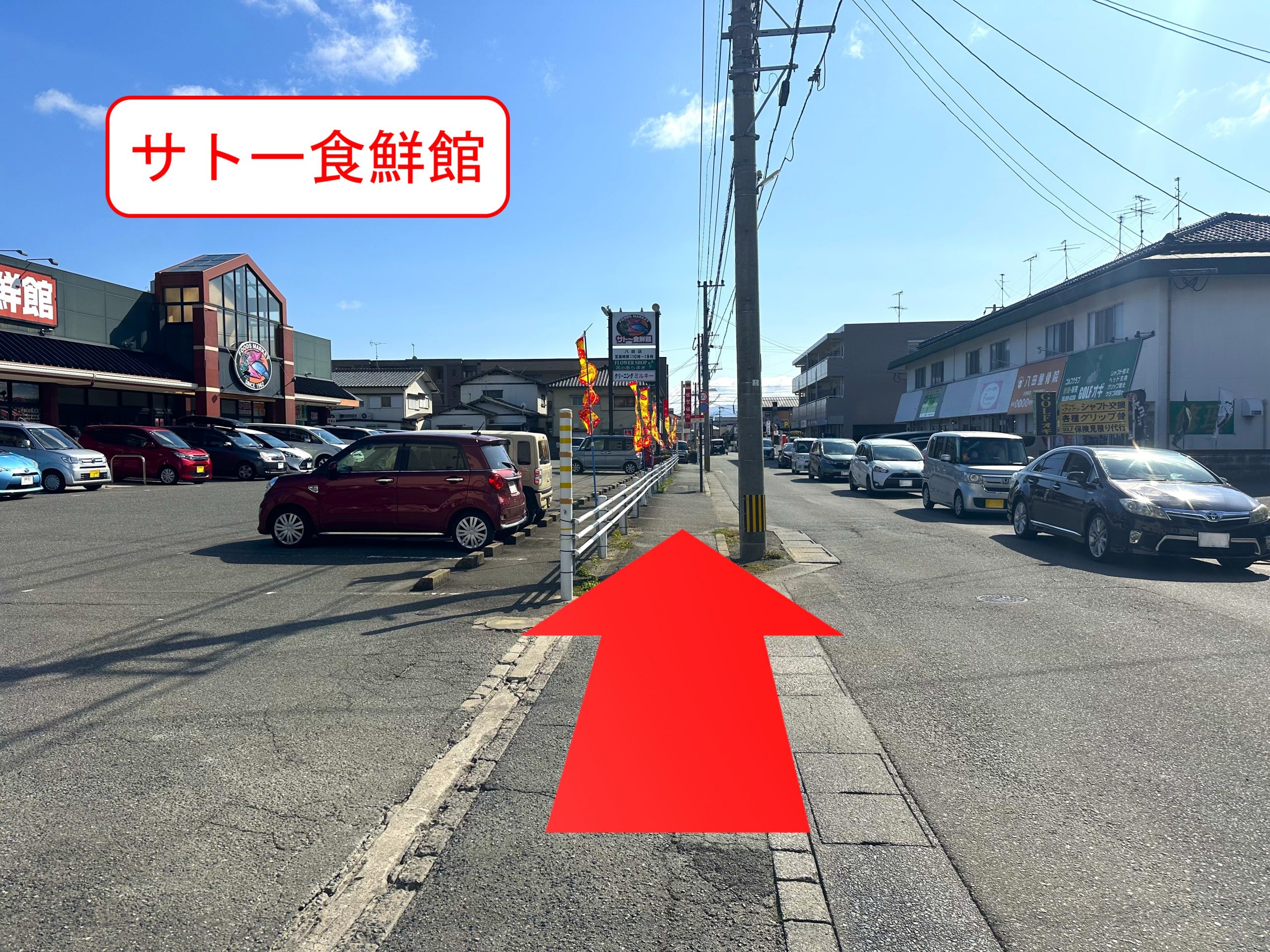 サトー食鮮館 八田店を左手に通過します。