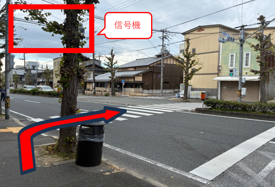 信号機手前にある横断歩道を渡ります。