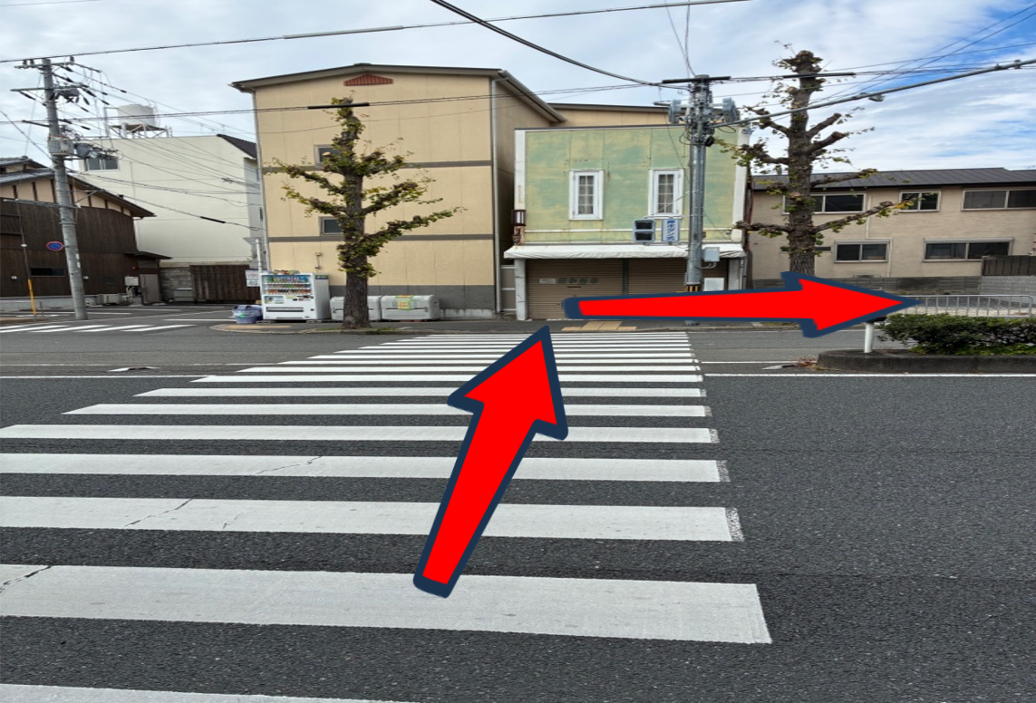 徒歩10m向こうの横断歩道へ