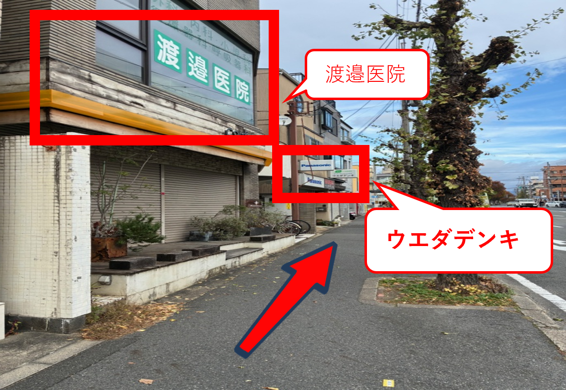 左手に『渡邉医院』『ウエダデンキ』を見ながら