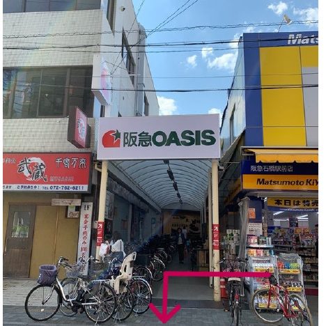 《石橋阪大前駅より徒歩3分》石橋商店街通り沿い、スーパーオアシスの前にある