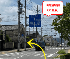 JR鹿沼駅を出て、県道217号を進み、「JR鹿沼駅前(交差点)」を左折し、 鹿沼駅西通りに入る。