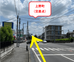 鹿沼駅西通りを550m直進。「上野町(交差点)」を通過する。