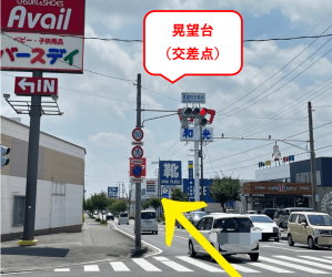 さらに110m直進。「晃望台(交差点)」を通過後、500m直進。