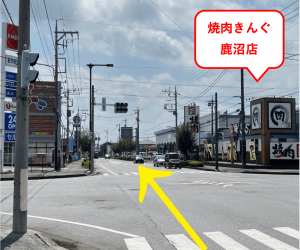 「焼肉きんぐ鹿沼店」を通過し、450m直進。