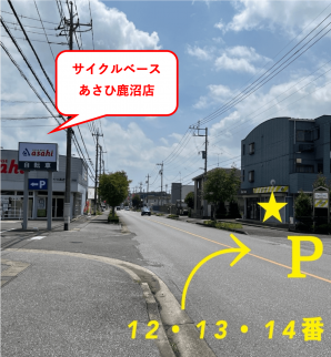 「サイクルベースあさひ鹿沼店」手前の交差点を右折。左手にあるのが当店です。