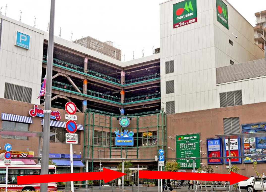 左手の複合施設「KOKOスクエア」方面へ進みます。