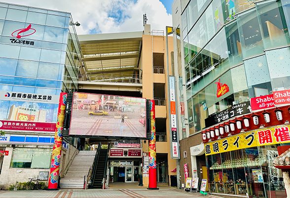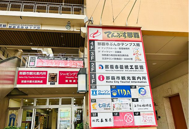 徒歩5分ほど直進すると【てんぶす那覇】に到着します