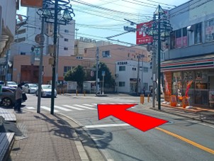 「セブン-イレブン みのり台駅前店」を目印に、1つ目の交差点まで直進します。