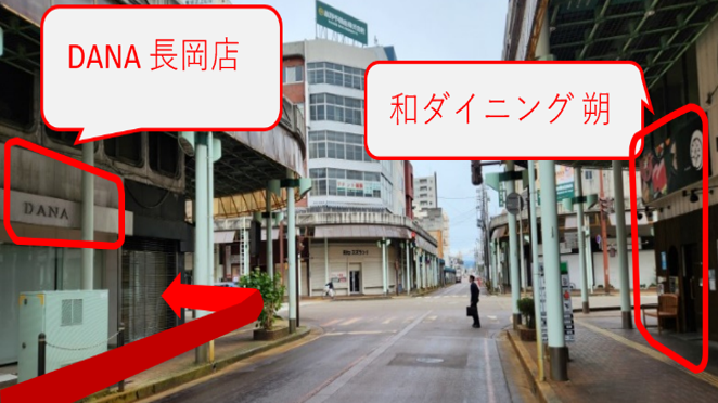 アーケード沿いに左に曲がって、長岡ターミナルホテル様の前を通過してください。