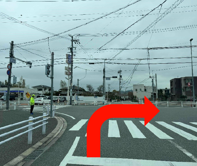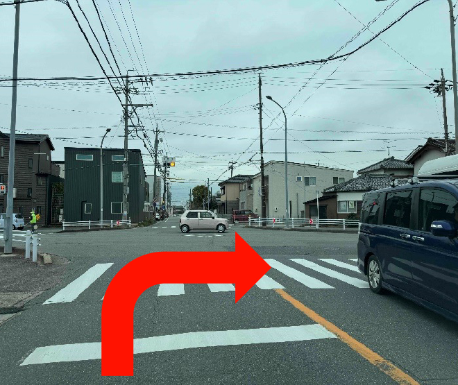 左手にローソン岡崎若松店様がある西若松交差点を右折します