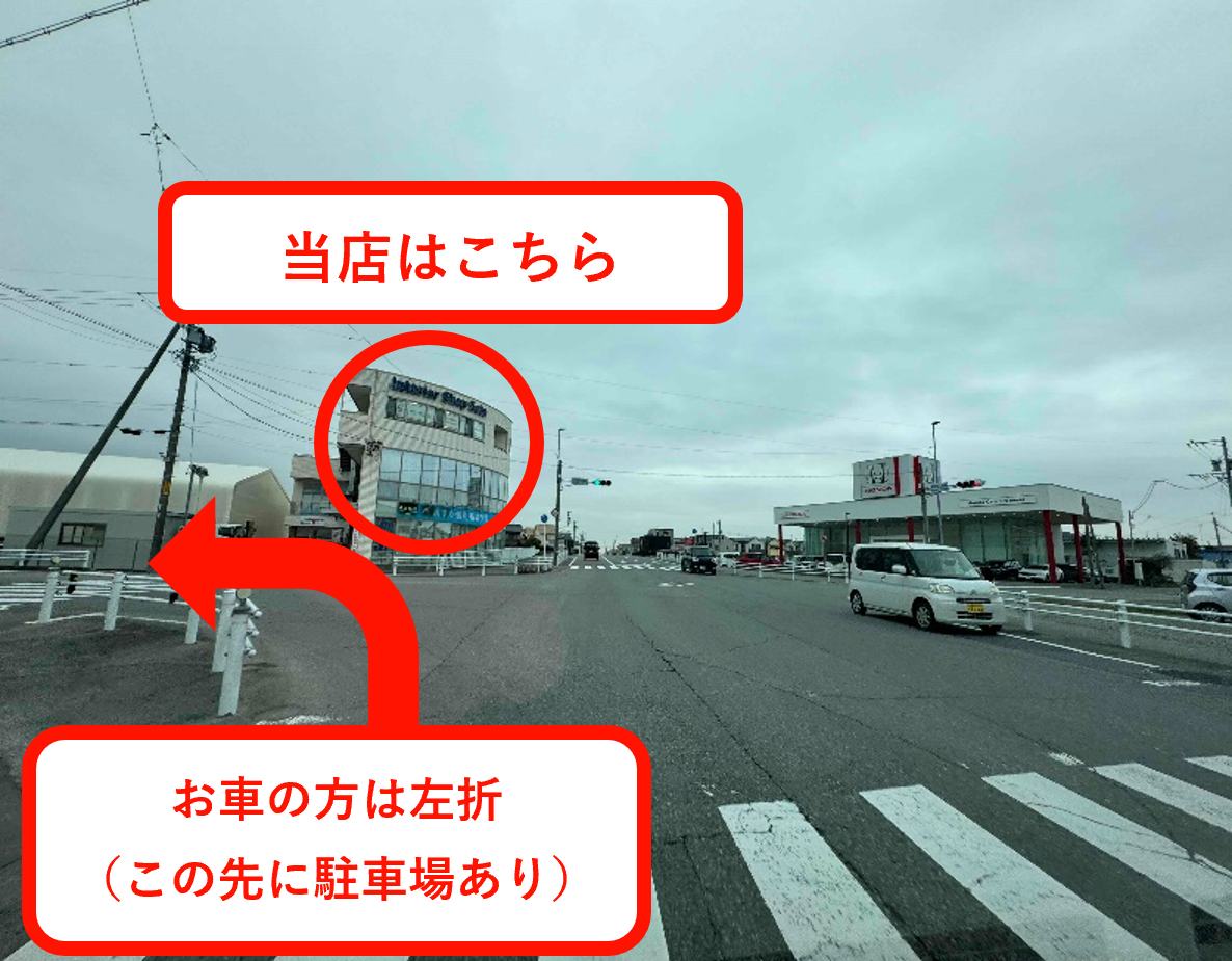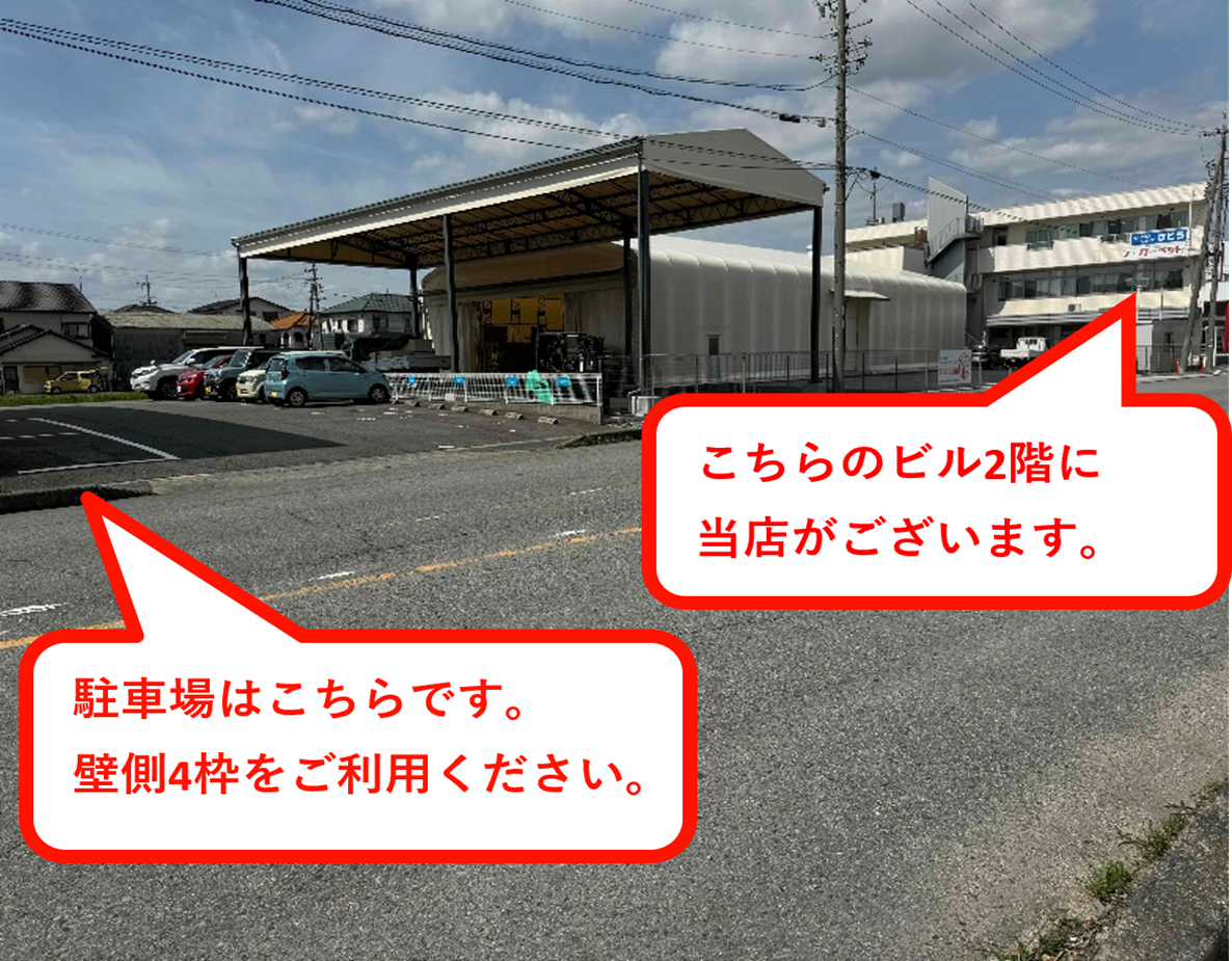 Hondacars三河 岡崎福岡店さん向かいのビル2階に当店がございます。 お車の方は福岡町上高須交差点を左折してください。