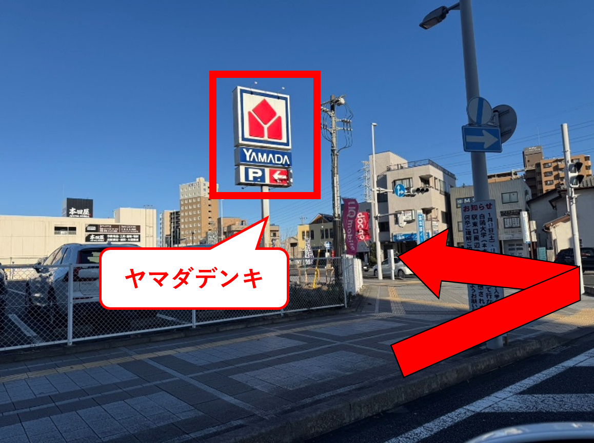 交差点をヤマダデンキ方面へ左折します。