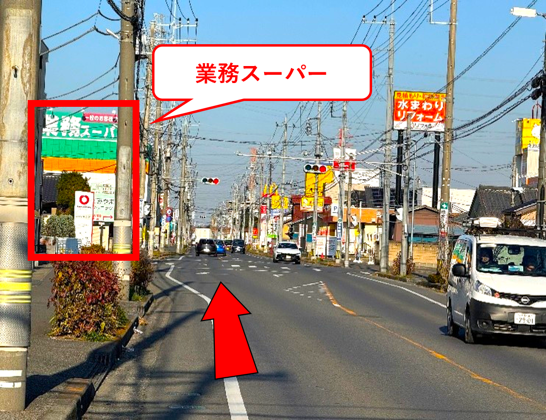 業務スーパーを超えて交差点を直進します。