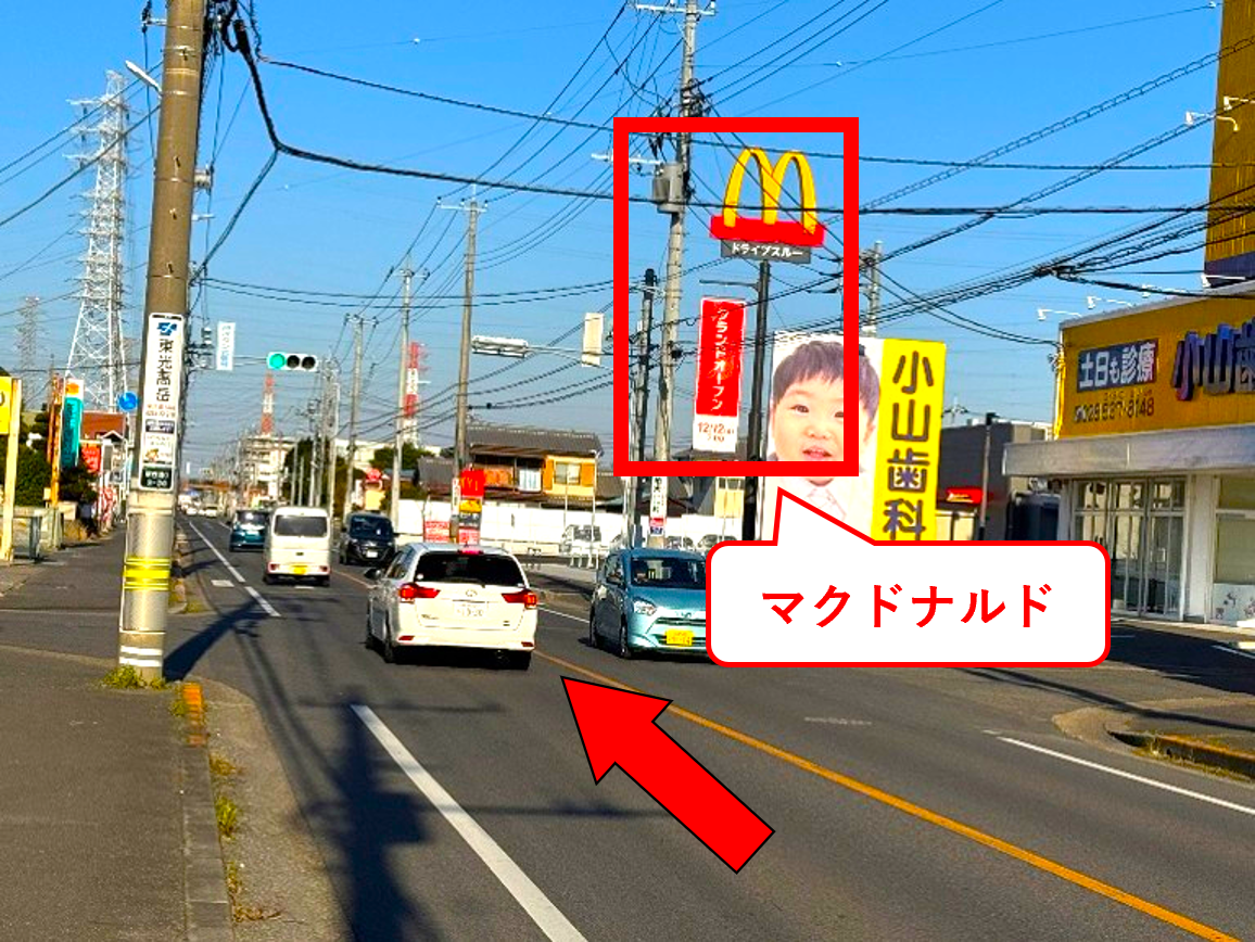 右側にマクドナルドが見えたら間もなく到着です。