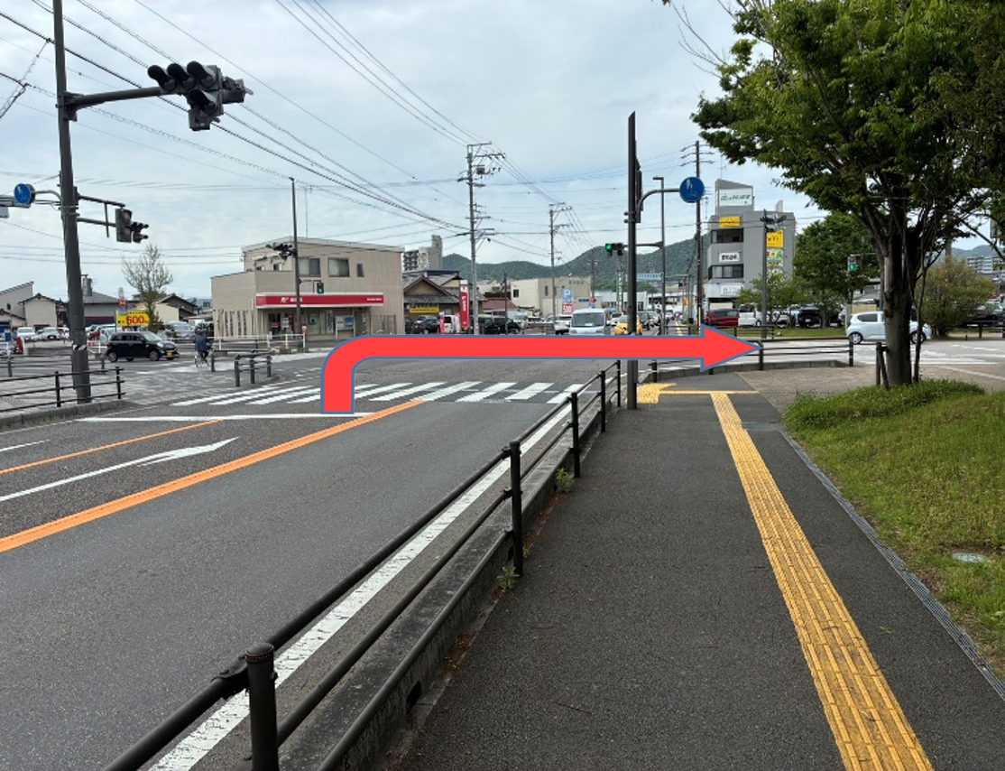 各務原南郵便局の手前ににある交差点を右折します。
