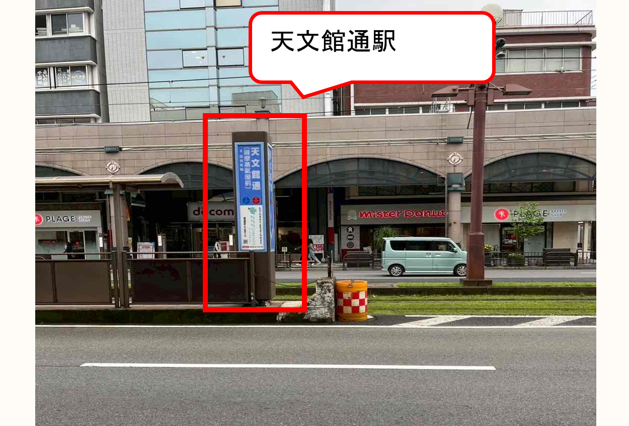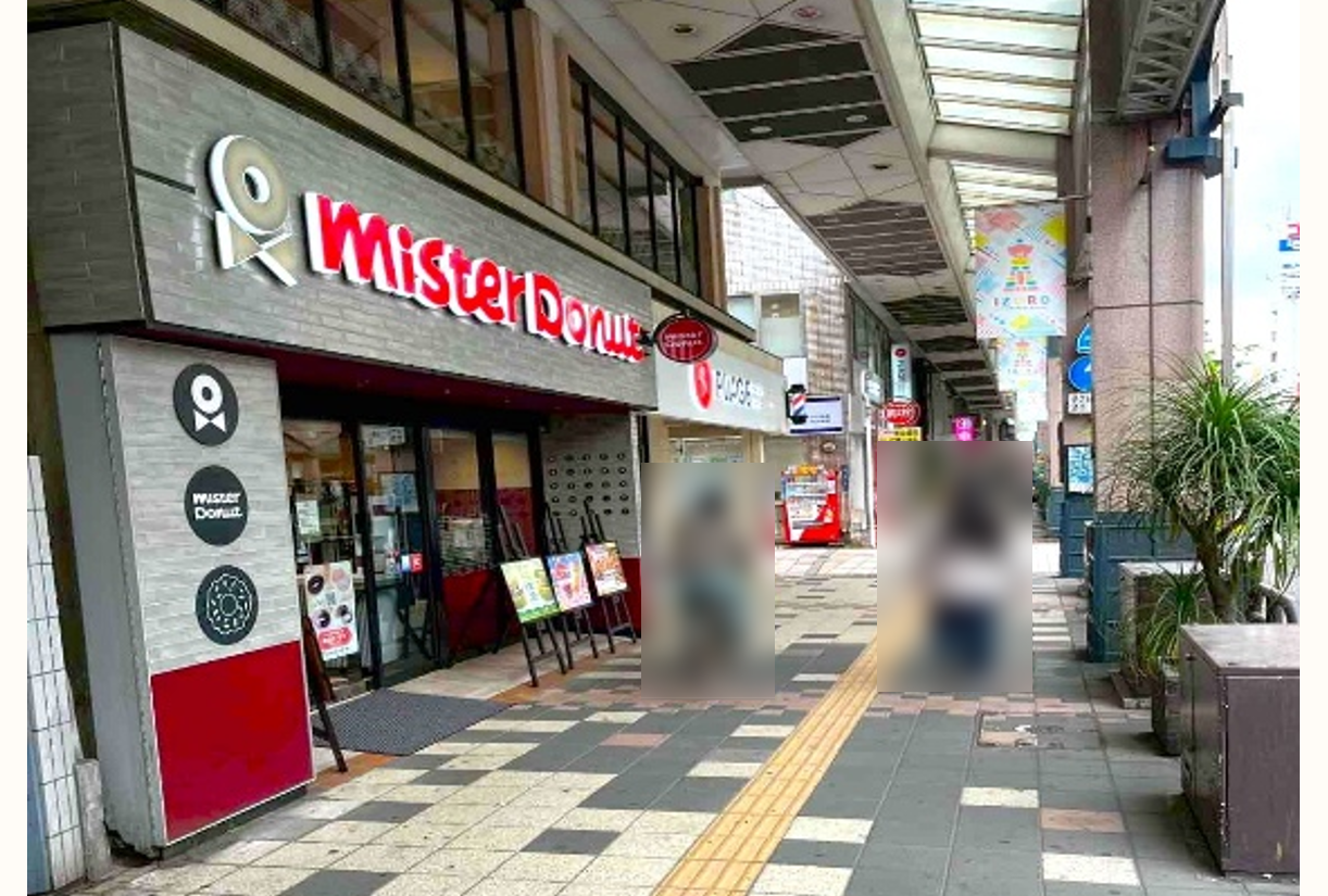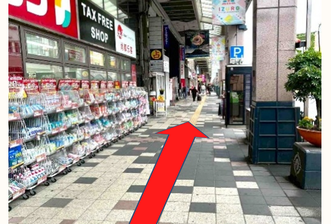 「ミスタードーナツ 天文館ショップ」の前を通り30m程進みますと当店がございます。