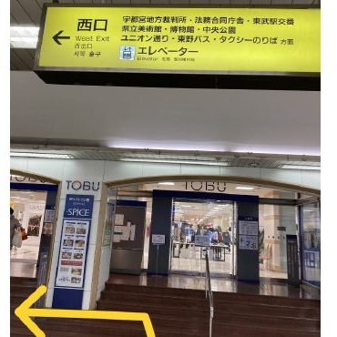東京街道を(北方面)東武デパート・ユニオン通り ・大通り方面にお進みください