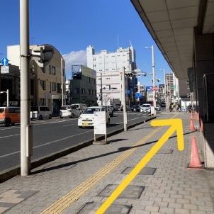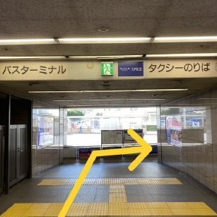 バスターミナル、タクシー乗り場より西口を出て頂き右方向へお進みください。