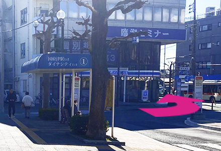 臨海セミナーさんとローソンさんのビルがある角で左折します。